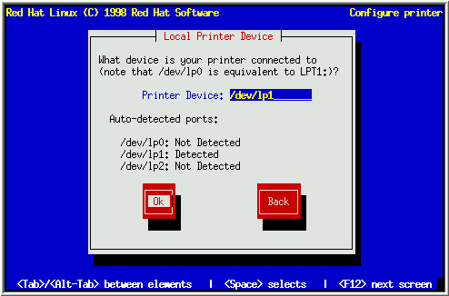 Enter the printer device name in the field provided. As a convenience, the installation program attempts to determine which printer ports are available on your computer. Select Next, and press [Space]. Now turn to Section 5.6.4 to continue.