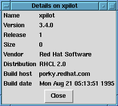 More information on a package can be seen by clicking on the Details pushbutton. A window like the one in figure 105 will then appear. This lists more information about the package being displayed in the main query window. When you select a new package in the query window, the information in the details window will change to reflect your new choice.
